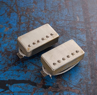 Each model begins with a verified reference. The Sweet Spots 59 Beyond and Sweet Spots 59 Beyond Bite humbuckers use sand-cast Alnico 5 magnets with a weak magnetic force matched to late 1950s examples and are wound with 42 AWG plain-enamel wire to 10 500 and 10 700 turns. The 62 S.W. Humbucker Set follows Gibson’s Square Window format with butyrate bobbins, short rough-cast magnets and 9.84 mm pole spacing, all confirmed against original examples.